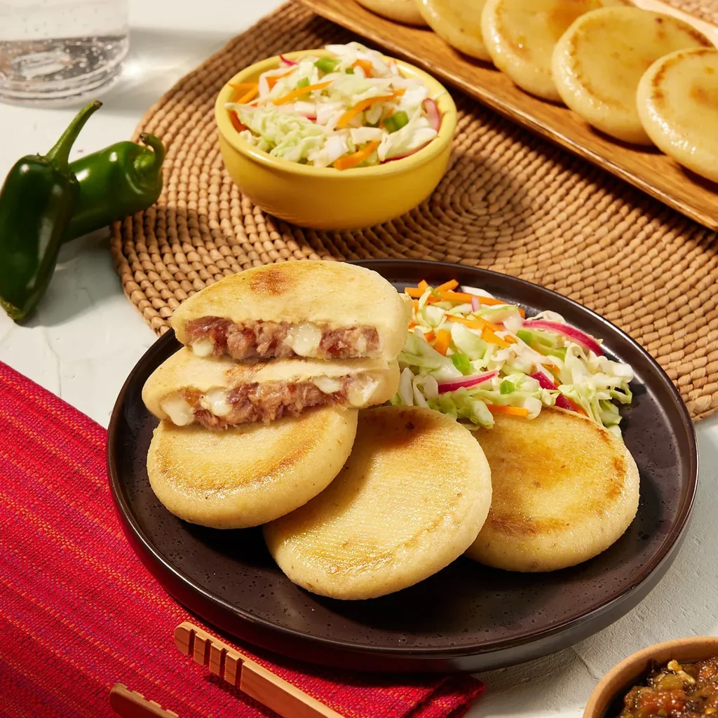 Del Real Foods Carnitas & Cheese Pupusas are crafted from stone ground masa (a corn dough), and stuffed with slow-cooked carnitas and cheesy mozzarella.